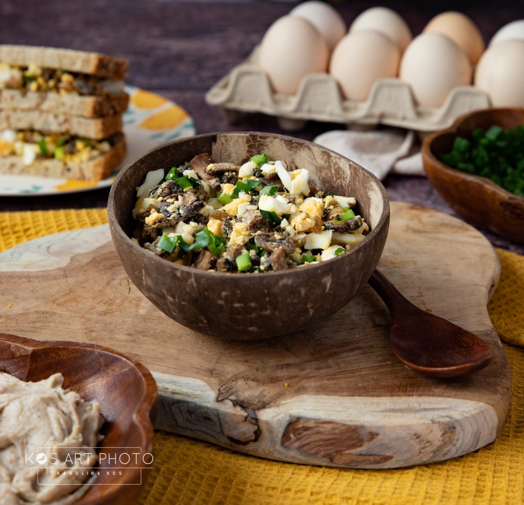 Dziś przychodzę z klasykiem: pastą jajeczną z pieczarkami i szczypiorkiem. Zdecydowanie moja ulubiona wersja. A jak wy najczęściej jadacie pastę jajeczną?