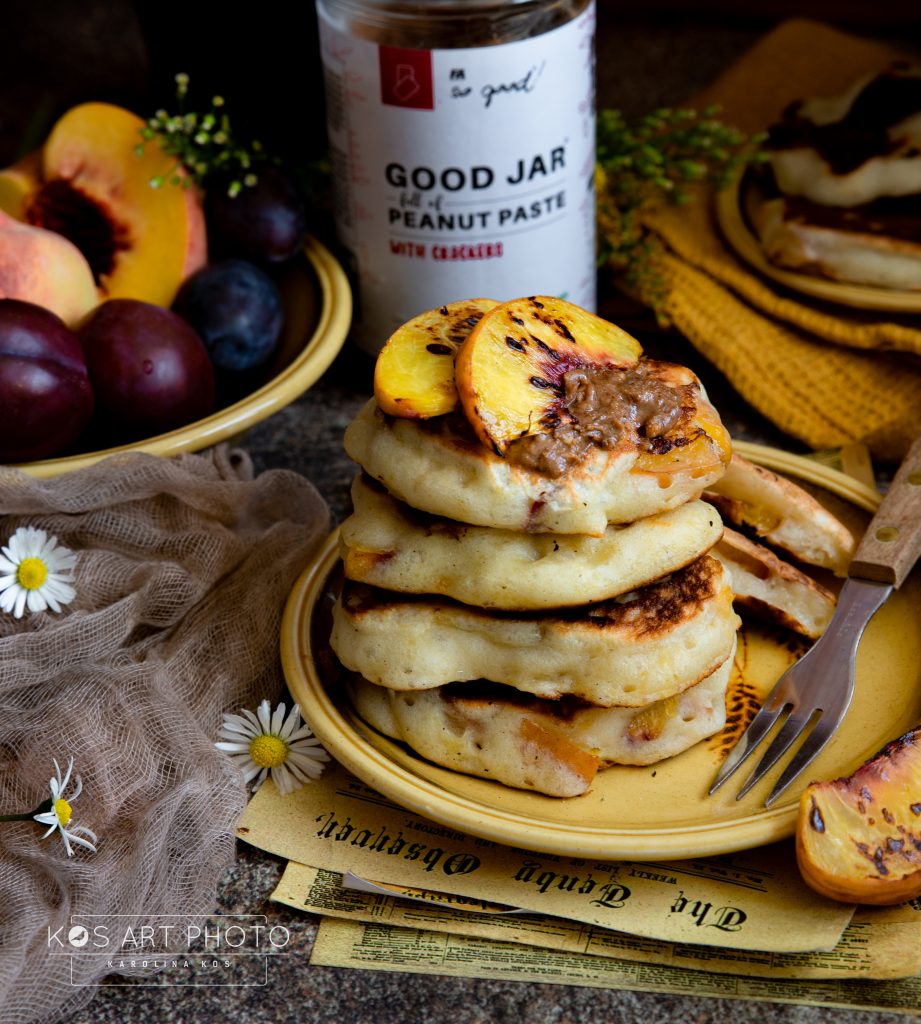 Dziś mam dla was drożdżowe racuchy, właśnie z brzoskwiniami 🙂 Do tego pasta orzechowa z krakersami od fa_sogood i grillowane owoce! Prawdziwie królewskie śniadanie! A wy wolicie racuszki z drożdżami czy bez?
