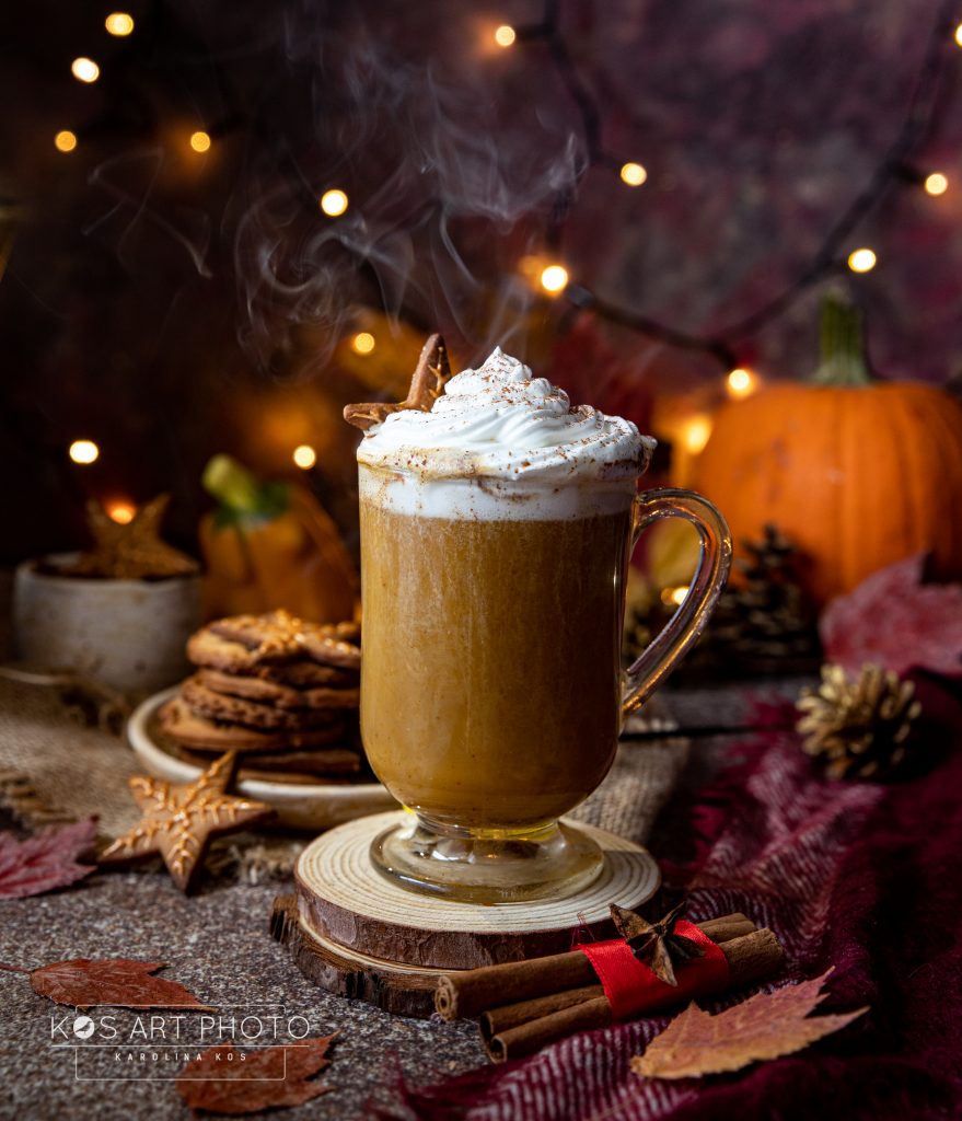 Przygotowujemy gorące espresso, a następnie je dosładzamy. Pozostałe składniki blendujemy razem (tak aby w puree nie było grudek) i podgrzewamy w rondelku. Ciepłym, dyniowym mlekiem zalewamy espresso. Wierzch możemy udekorować bitą śmietaną i posypać cynamonem.