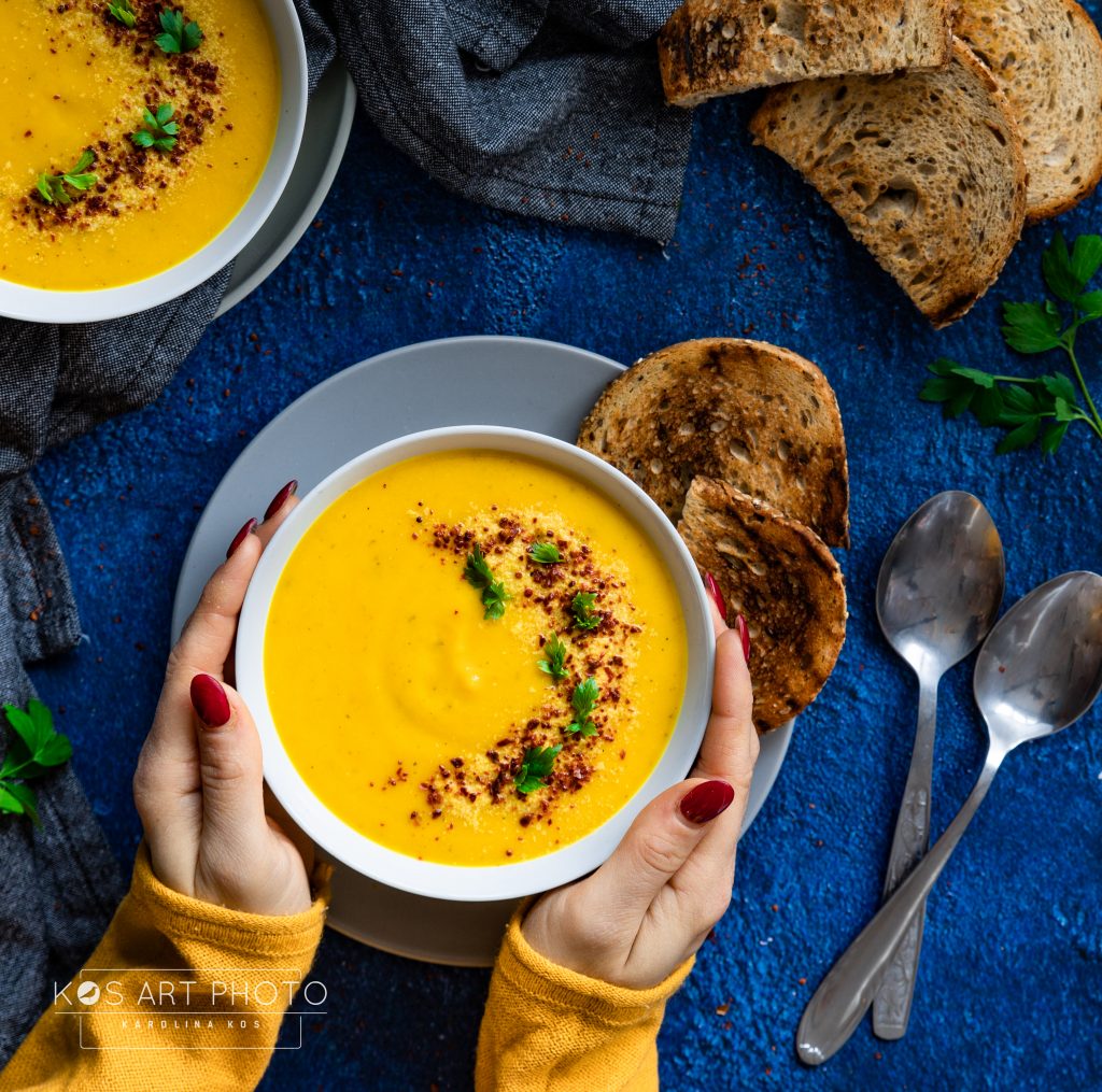 W zimowe dni, nic tak nie rozgrzewa jak porcja gorącej, pysznej i sycącej zupy. Dziś zapraszam na rewelacyjny, wegański krem z ziemniaków a’la zupa serowa! Ten cudowny intensywny kolor zawdzięcza kurkumie, a serowy posmak płatkom drożdżowym. Gwarantuję, że pokochacie ten przepis! U mnie była hitem, nawet wśród największego sceptyka bezmięsnego jedzenia 🙂