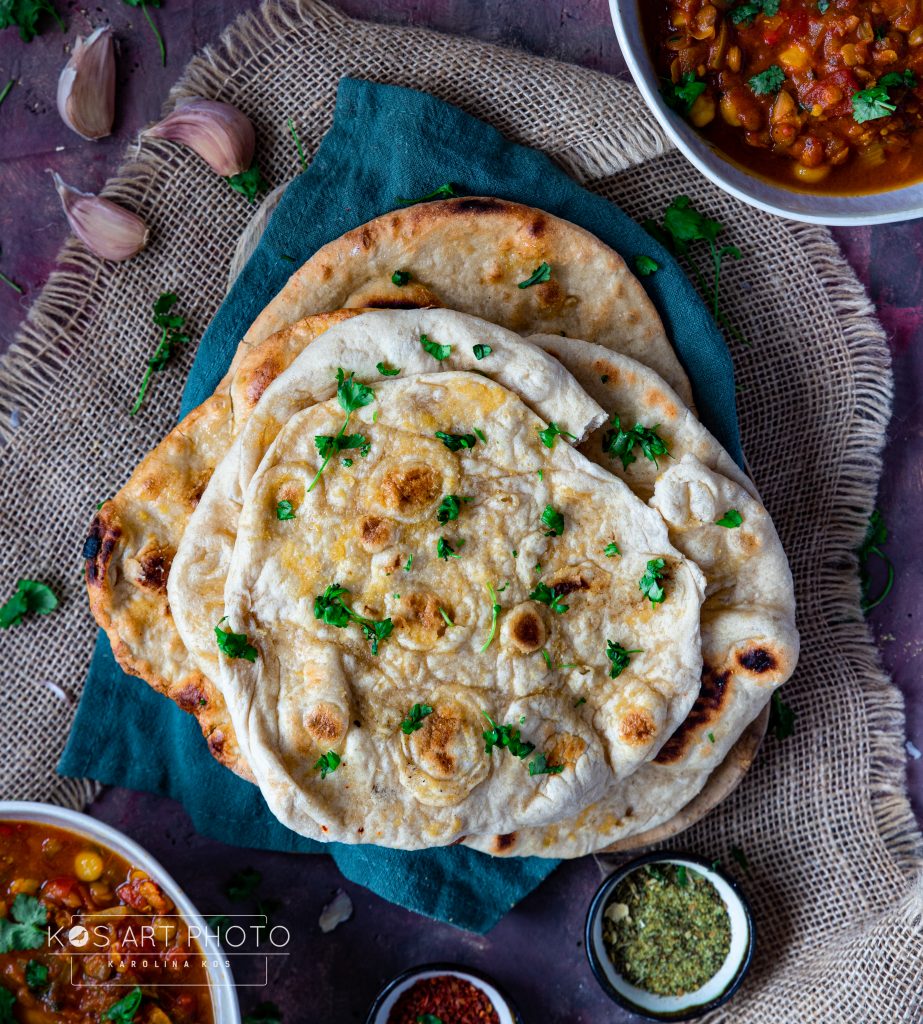 Przybywam z przepisem na moje ukochane chlebki naan. Jeśli ktoś ich nie zna, to od razu powiem ze jest to indyjskie pieczywo drożdżowe w kształcie takich placków, smażone na suchej patelni. Przyznam że ja je uwielbiam, zawsze zamawiam je w restauracjach, ale także często przygotowuję je w domu. Idealnie sprawdzi się do wszelkich gulaszy, potrawek czy gęstych zup, ale także lubię je sobie zjadać np posmarowane hummusem. Znacie? Lubicie?