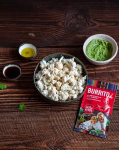 Tydzień rozpoczynam meksykańską ucztą w iście karnawałowym stylu! Zapraszam na przepyszne burrito z pieczonym kalafiorem i pastą z awokado! Generalnie uwielbiam jeść wszystko zawinięte w tortillę, a połączenie tego kalafiora, z awokado, kolendrą i przyprawą meksykańską okazało się być strzałem w dziesiątkę!