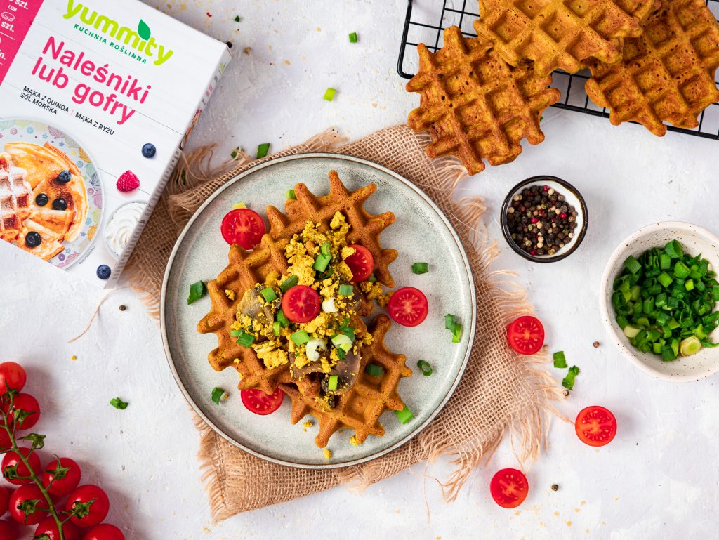 Wykorzystałam bezglutenową mieszankę od Yummity i przygotowałam śniadaniowe gofry z tofucznicą. A ponieważ tofucznica jest nie tylko dla wegan, gofry zrobiłam w dwóch odsłonach: z jajkiem i bez.