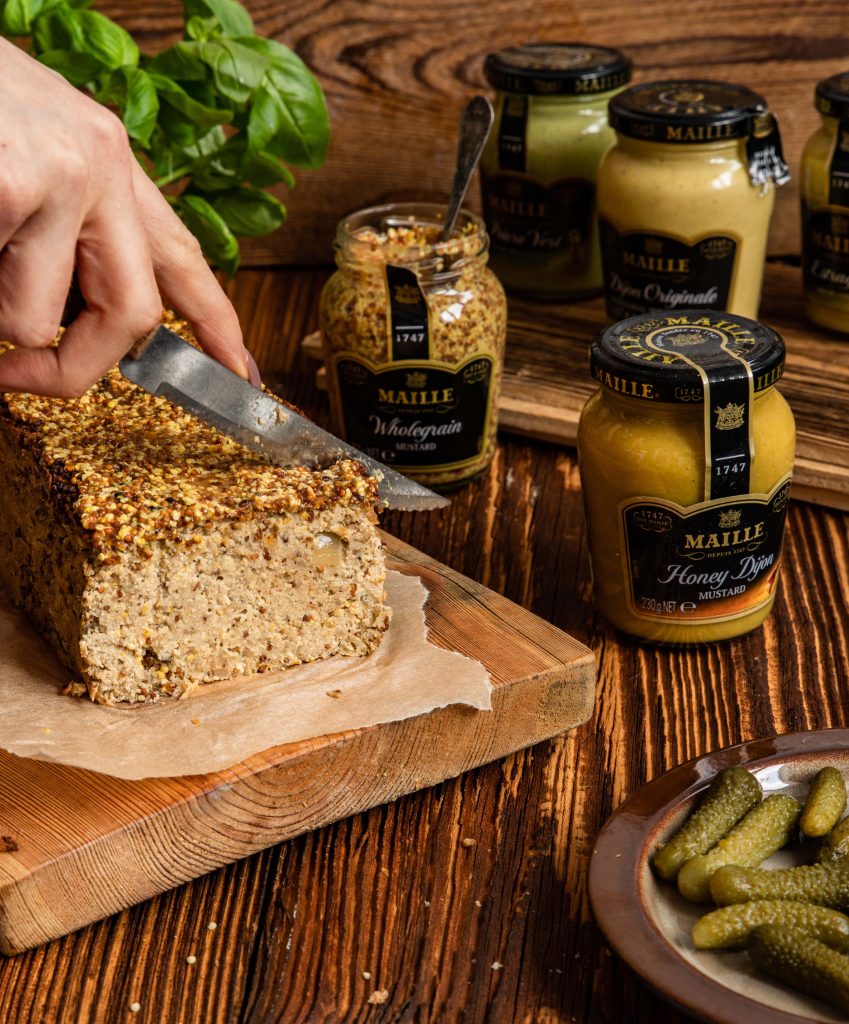 Musztardowy pasztet z białej fasoli i tofu to pyszny pomysł na wege Wielkanoc. Kremowy i bardzo delikatny, z wyraźnie wyczuwalnym smakiem musztardy starofrancuskiej Dijon, jednak nie zdominowanym przez niego. Dzięki przypieczonej na wierzchu musztardowej glazurze z całymi ziarnami gorczycy prezentuje się znakomicie, a jej smak nadaje tej potrawie niepowtarzalnego charakteru. Podany na przykład na kanapkach w towarzystwie lekko słodkiej musztardy miodowej jest czym, czego zdecydowanie warto spróbować.