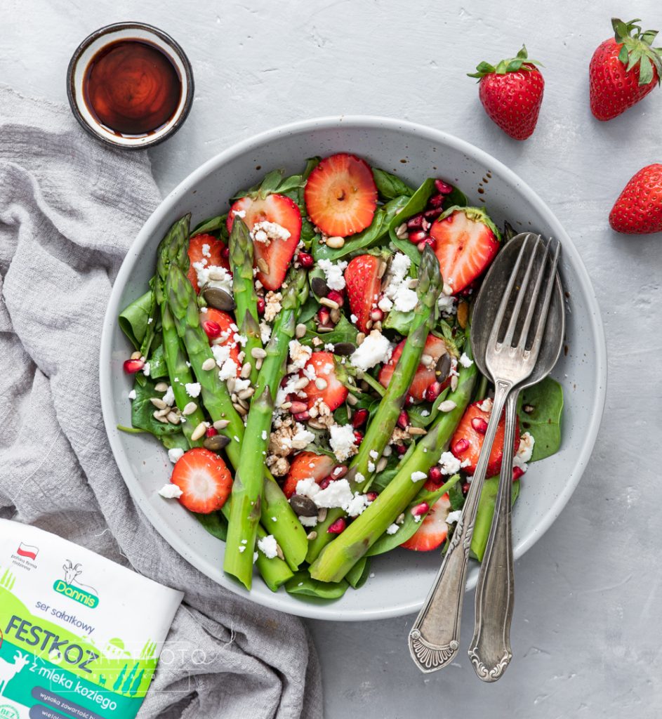 Lekka sałatka ze szparagami, truskawkami i serem kozim