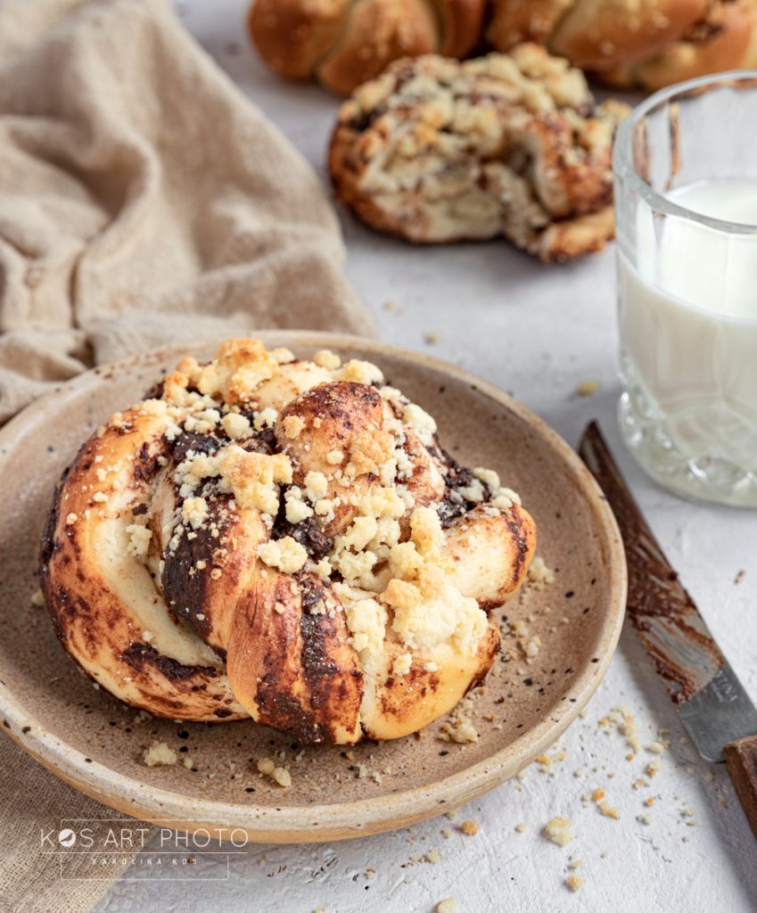 Jakie jedzenie kojarzy wam się z dzieciństwem? U mnie bezkonkurencyjnie będzie to chałka z nutellą! Mogłam jeść codziennie na śniadanie (i właściwie to prawie codziennie jadłam, haha). Moja córka też uwielbia chałkę, tym razem postanowiłam przygotować je w formie mini bułeczek, z domowym kremem orzechowym czekoladowym i waniliową kruszonką. Na blogu pojawiły się już dwa przepisy na domową nutellę, oba super sprawdzą się w przygotowaniu tych bułeczek. I na pewno będzie to lepsza i zdrowsza alternatywa dla kupnym kremów 😉 Poniżej podrzucam linki, oraz przepis na chałeczki.