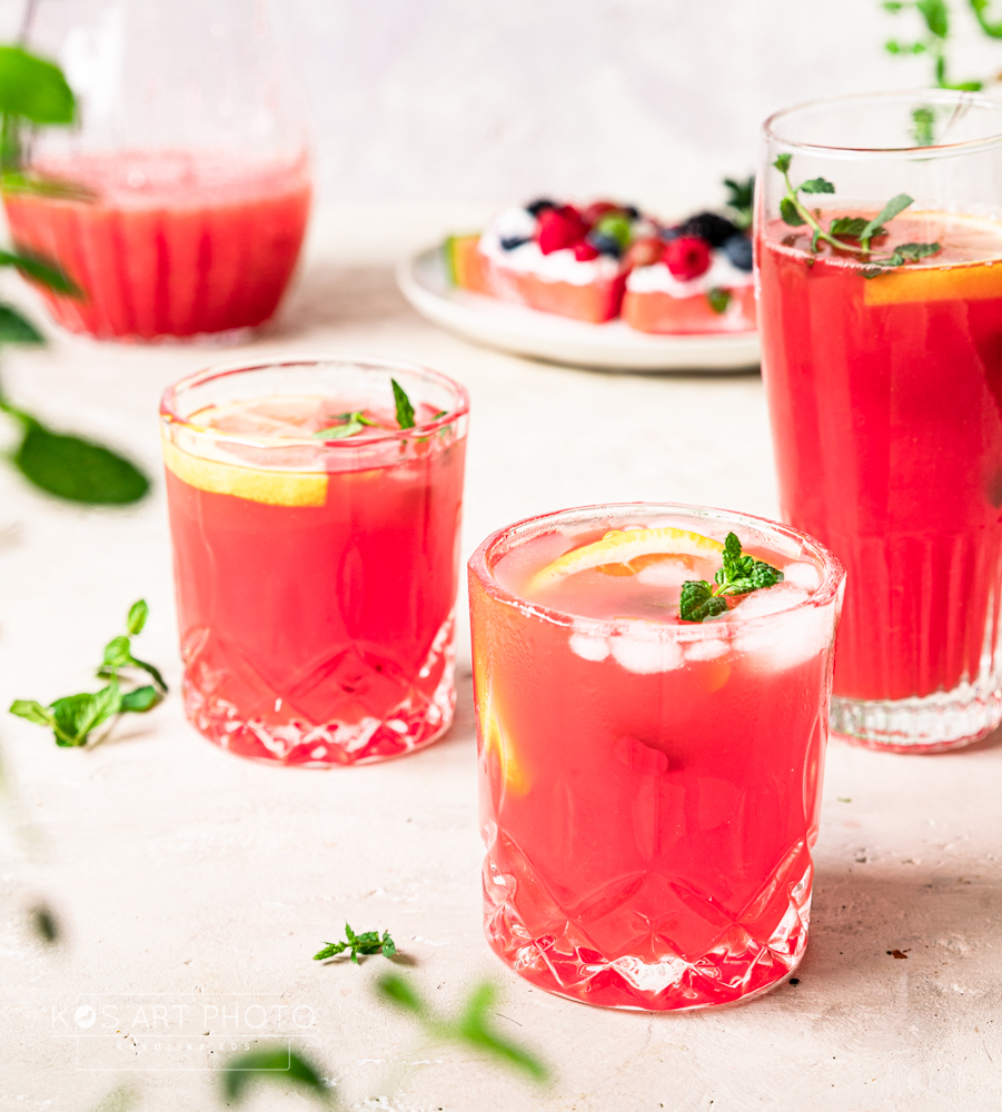 Latem wyjątkowo ważne jest odpowiednie nawodnienie. Szczególnie w upalne dni należy pamiętać o przyjmowaniu odpowiedniej ilości płynów. Wtedy, oprócz wody, polecam domowe lemoniady! Tym razem mam dla was propozycję na bardzo orzeźwiającą lemoniadę arbuzową. Te owoce już same w sobie dobre nawadniają, są pyszne, słodkie i zawierają wiele witamin i minerałów.