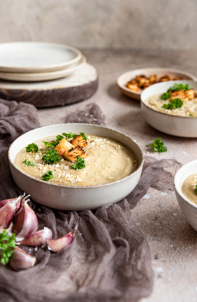 Najpierw wszystkie warzywa wylądowały w piekarniku, dzięki czemu warzywa głębszego smaku, a całości dopełnił pieczony czosnek, o delikatnie słodkim, przydymionym aromacie.