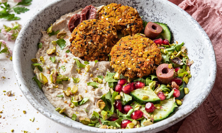Mezze z hummusem i marchewkowymi kotlecikami jaglanymi
