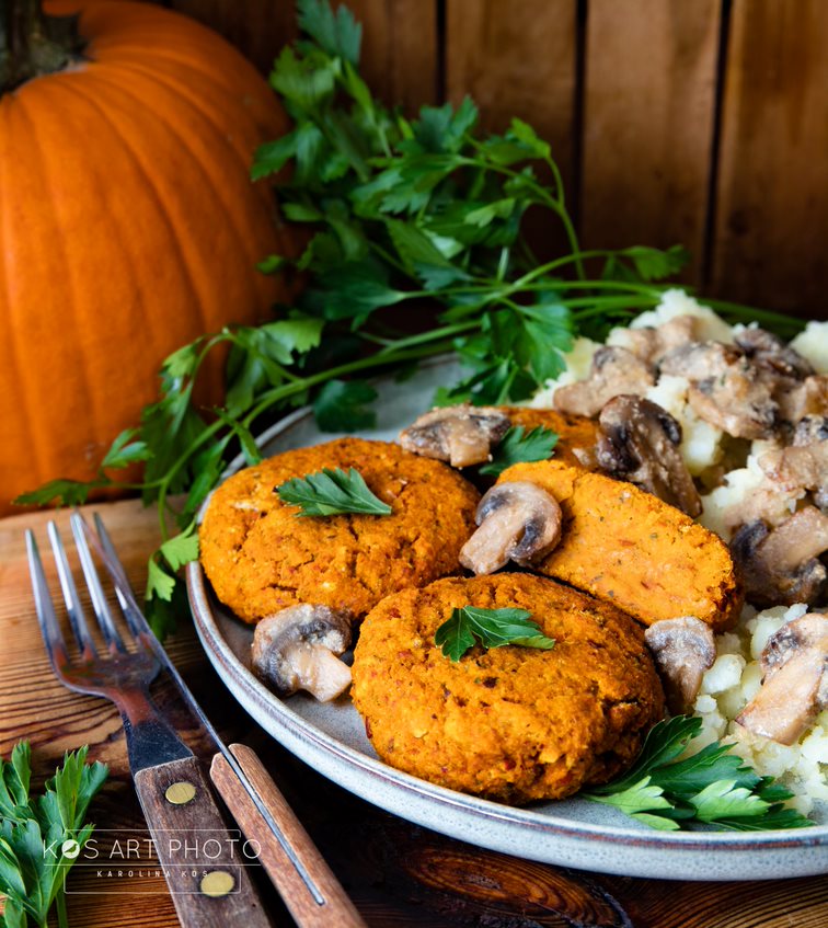 Dziś mam dla was przepis na pyszne pieczone kotlety z dyni. Jesiennie, smacznie i w dodatku fit! Do tego jeszcze tłuczone ziemniaczki i sos pieczarkowy.
