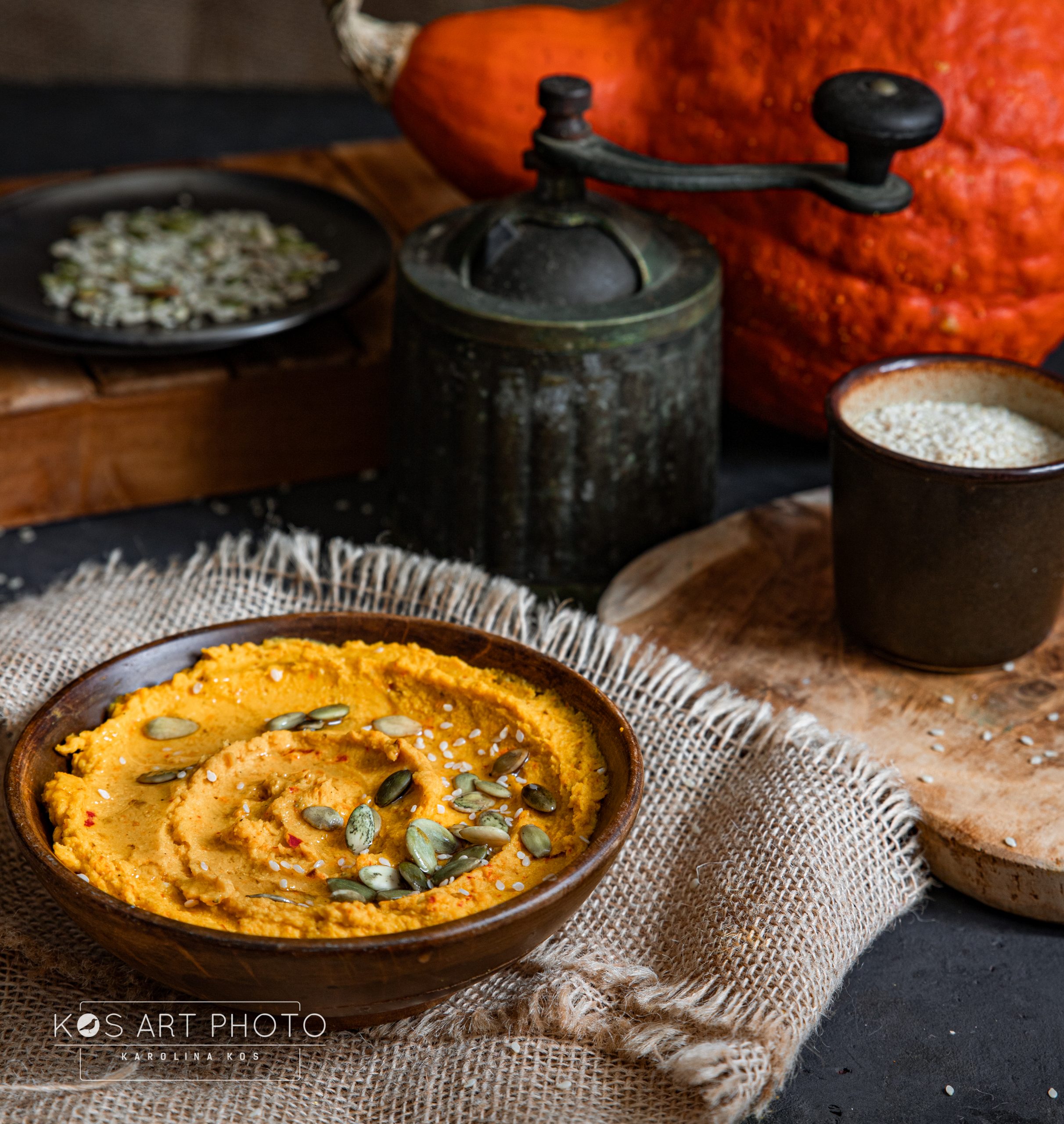 Prezentuję wam kolejny pomysł na moją ukochaną królowę jesieni – dynię! Tym razem w postaci hummusu! Bardzo lubię domowe wegańskie pasty, szczególnie w wersjach smakowych.