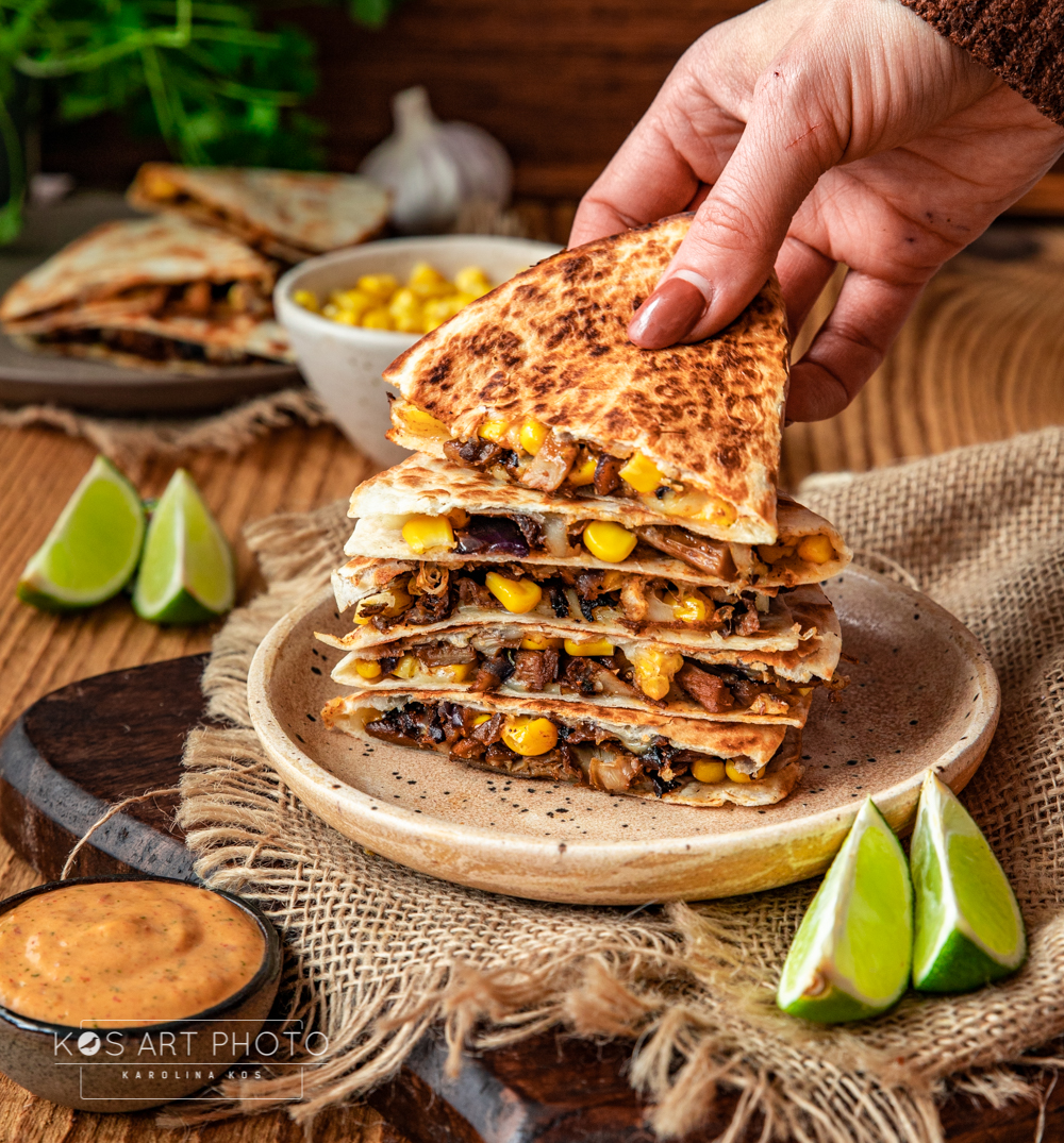 Dziś proste danie w stylu meksykańskim. Lubicie quesadilla? Jej głównymi składnikami jest ser (queso) i tortilla, ja przygotowałam wersję z boczniakami! Już dawno ich nie