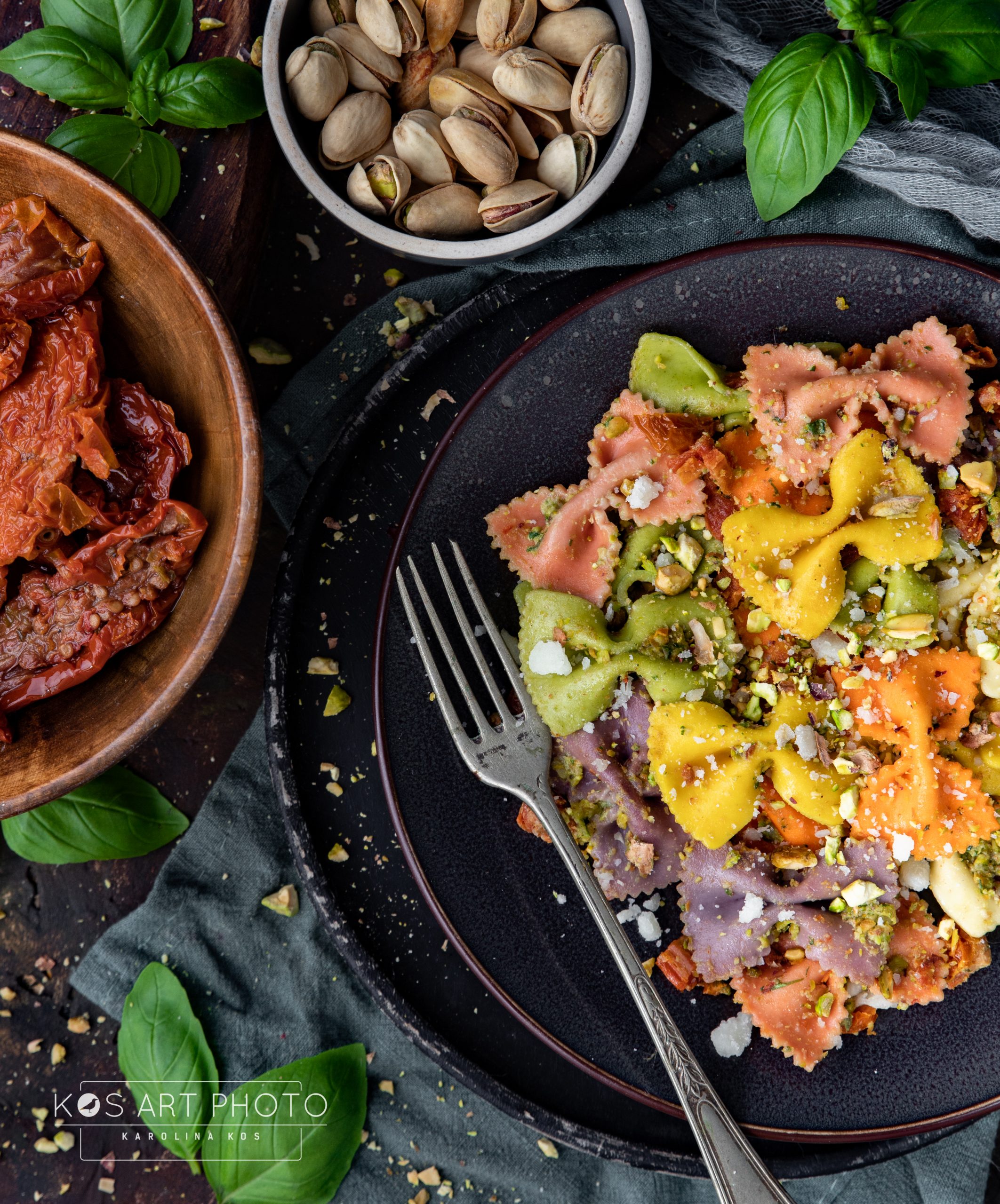Kolorowy makaron z pistacjowym pesto