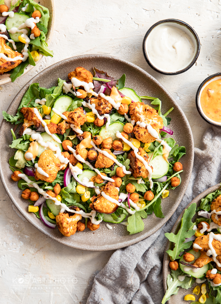 Kolejna odsłona kalafiora: upieczony, w lekko pikantnym sosie buffalo, jest jednym z najsmaczniejszych jakie jadłam! Samodzielnie sprawdzi się jako super przekąska, do filmu czy na